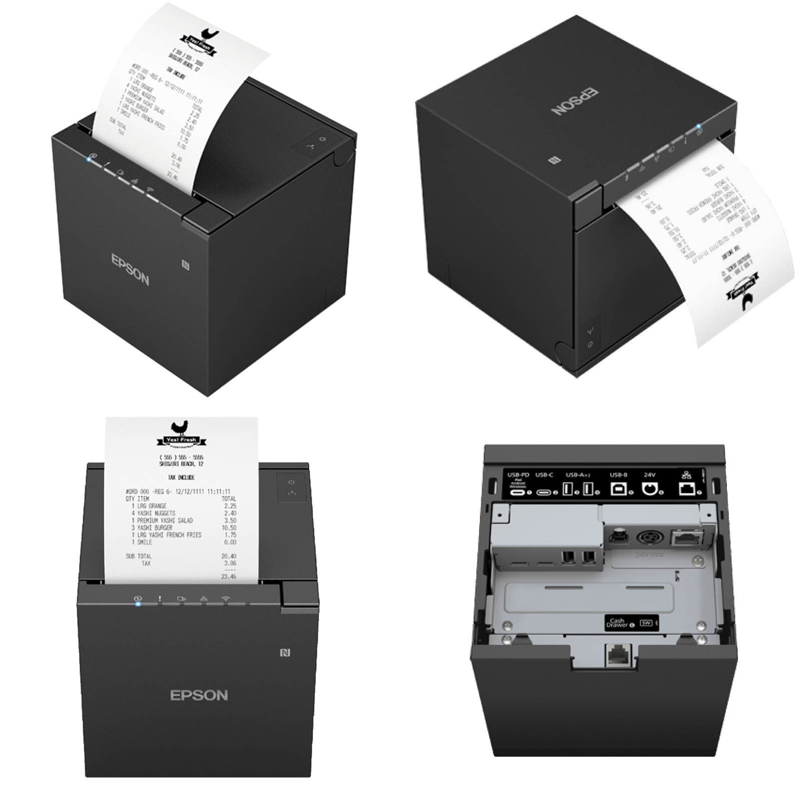 เครื่องพิมพ์ใบเสร็จความร้อน Thermal Receipt Printer ยี่ห้อ EPSON รุ่น TM-m30III รุ่นนี้สามารถทำงานร่วมกับโปรแกรมขายหน้าร้านหรือโปรแกรมเครื่องคิดเงิน ระบบ POS (Point of Sale) ได้ทุกโปรแกรม สามารถพิมพ์สลิปใบเสร็จรับเงินได้โดยไม่ต้องใช้หมึก เพราะตัวเครื่องพิมพ์ใช้ระบบความร้อนในการพิมพ์โดยต้องใช้คู่กับกระดาษใบเสร็จความร้อน เครื่องพิมพ์รุ่นนี้ใช้งานกับกระดาษความร้อนขนาด 80 มม. พิมพ์ได้รวดเร็วด้วยความเร็วในการพิมพ์ 300 มม./วินาที ตัวอักษรคมชัด มีฟังก์ชั่นตัดกระดาษอัตโนมัติ เชื่อมต่อผ่าน USB+LAN+Bluetooth+WiFi
