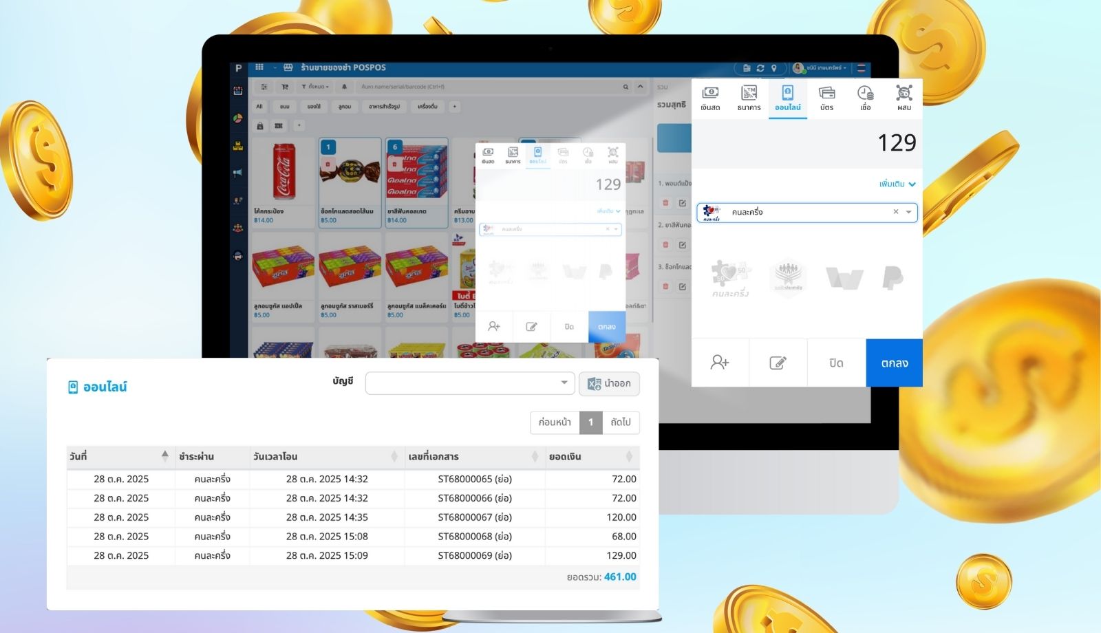 - จุดเด่นที่สุดคือ ระบบ POSPOS จะ รวบรวมข้อมูลการชำระเงินจากทุกช่องทาง (เงินสด, บัตร, QR ทั่วไป, และ "คนละครึ่ง พลัส") ไว้ในรายงานสรุปเดียว