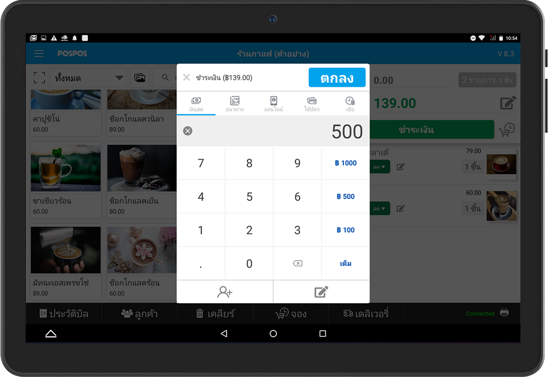 และถ้าร้านของคุณมีพื้นที่จุดขายจำกัด หรือไม่อยากลงทุนเยอะสำหรับอุปกรณ์หน้าร้าน คุณสามารถเลือกใช้งานบนระบบ Android ผ่าน Tablet ได้ค่ะ ถึงจะเป็นเครื่องเล็กกะทัดรัด แต่พกพาความสามารถมาแบบแน่นเอี๊ยด จะมีความสามารถอะไรบ้าง มาดูกันค่ะ