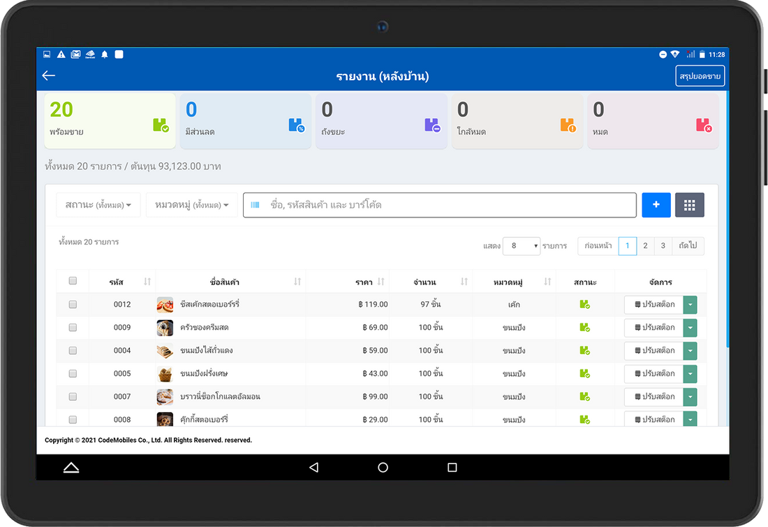 นอกจากรายงานการขายแบบเรียลไทม์แล้ว การใช้งานบนระบบ Android คุณสามารถดูสรุปยอดขายรายวันแบบย่อได้ ทำให้ง่ายต่อการตรวจเช็คจำนวนเงินในลิ้นชักที่ขายได้ในแต่ละวัน และเพิ่มความสะดวกเป็นอย่างยิ่งให้กับการบริหารจัดการร้านที่มีพนักงาน เพราะสามารถพิมพ์ออกมาเป็นใบเสร็จเพื่อส่งยอดรายวันได้เมื่อมีการเชื่อมต่อกับเครื่องพิมพ์ใบเสร็จค่ะ