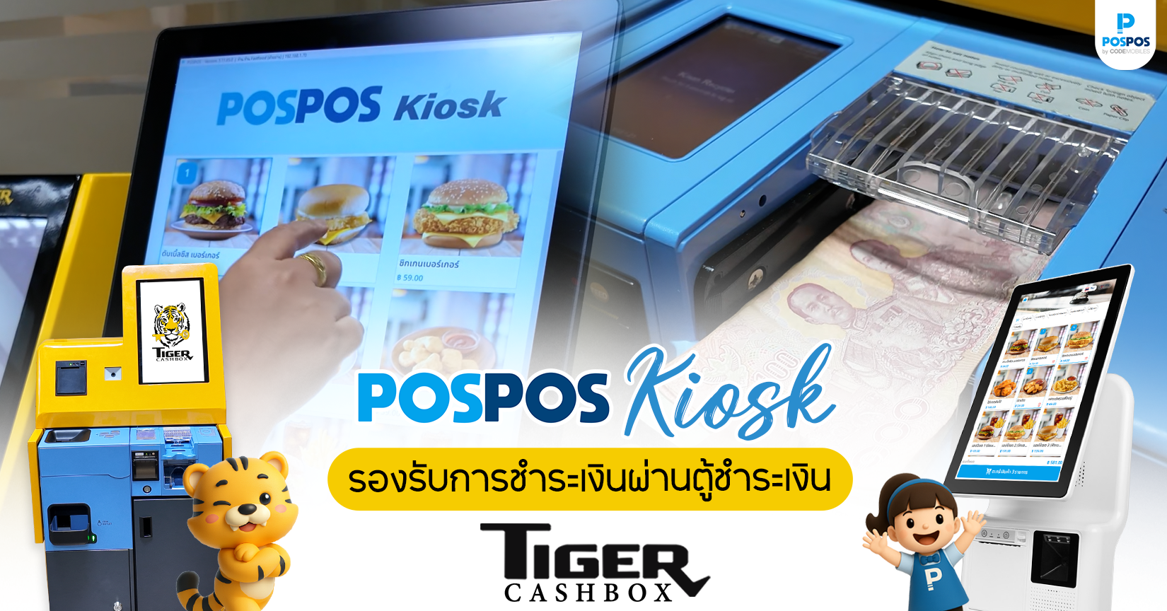 ระบบ Kiosk จาก POSPOS เชื่อมต่อตู้เก็บเงินอัจฉริยะ Tiger Cashbox เพื่อการจัดการร้านอาหารยุคใหม่