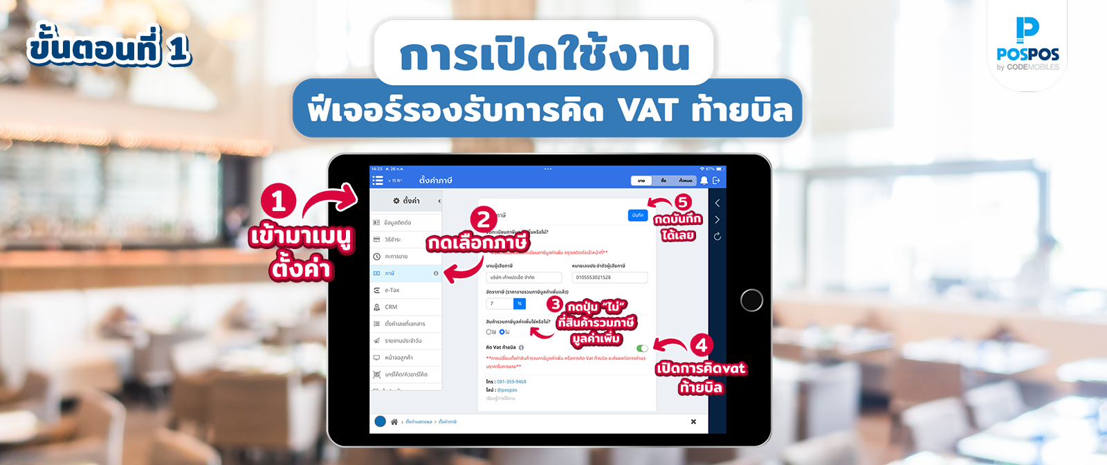 ขั้นตอนการใช้งานฟีเจอร์ใหม่ รองรับการคิด VAT ท้ายบิล