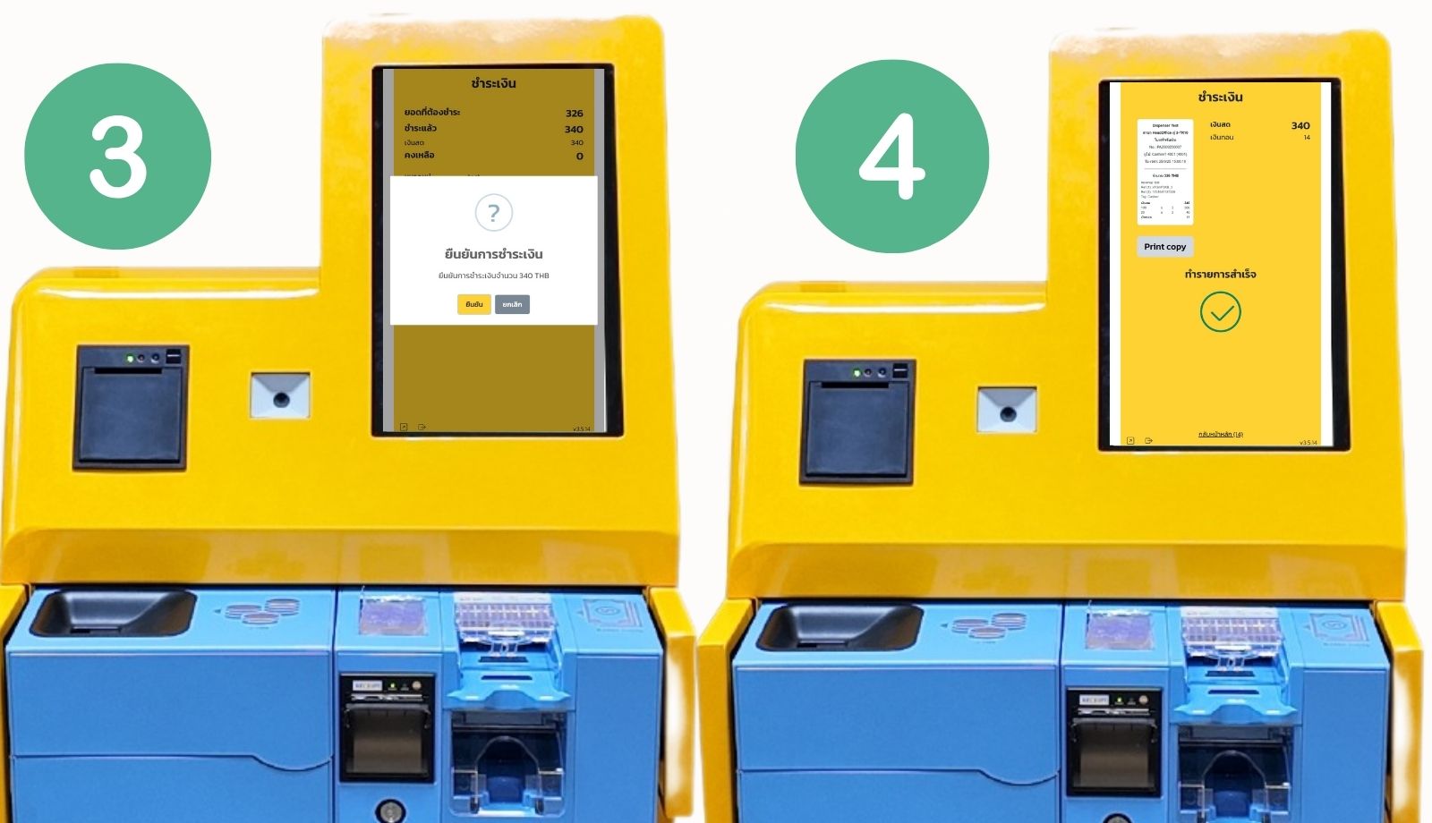 - การทอนเงินและการออกใบเสร็จ: ตู้ Tiger Cashbox จะทอนเงินส่วนเกินคืนให้กับลูกค้าอย่างถูกต้องและรวดเร็ว จากนั้นระบบ Kiosk จะออกใบเสร็จและใบออเดอร์ทันทีเมื่อการชำระเงินเสร็จสิ้น