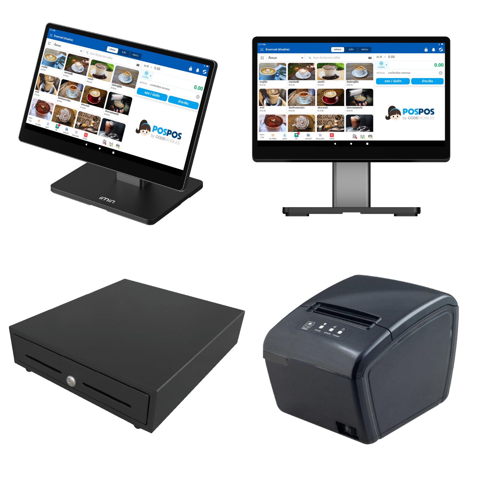- ลิ้นชักเก็บเงินอัตโนมัติ 4 ช่องแบงค์ / 8 ช่องเหรียญ