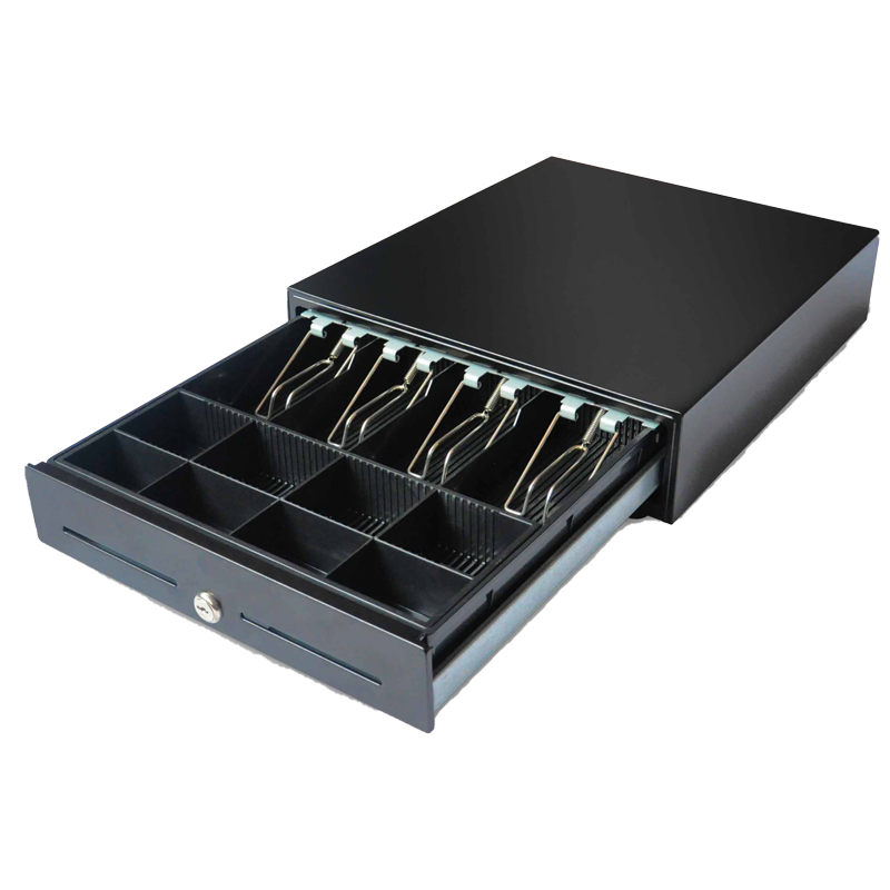 • ลิ้นชักเก็บเงินอัตโนมัติ 4 ช่องแบงค์ / 8 ช่องเหรียญ