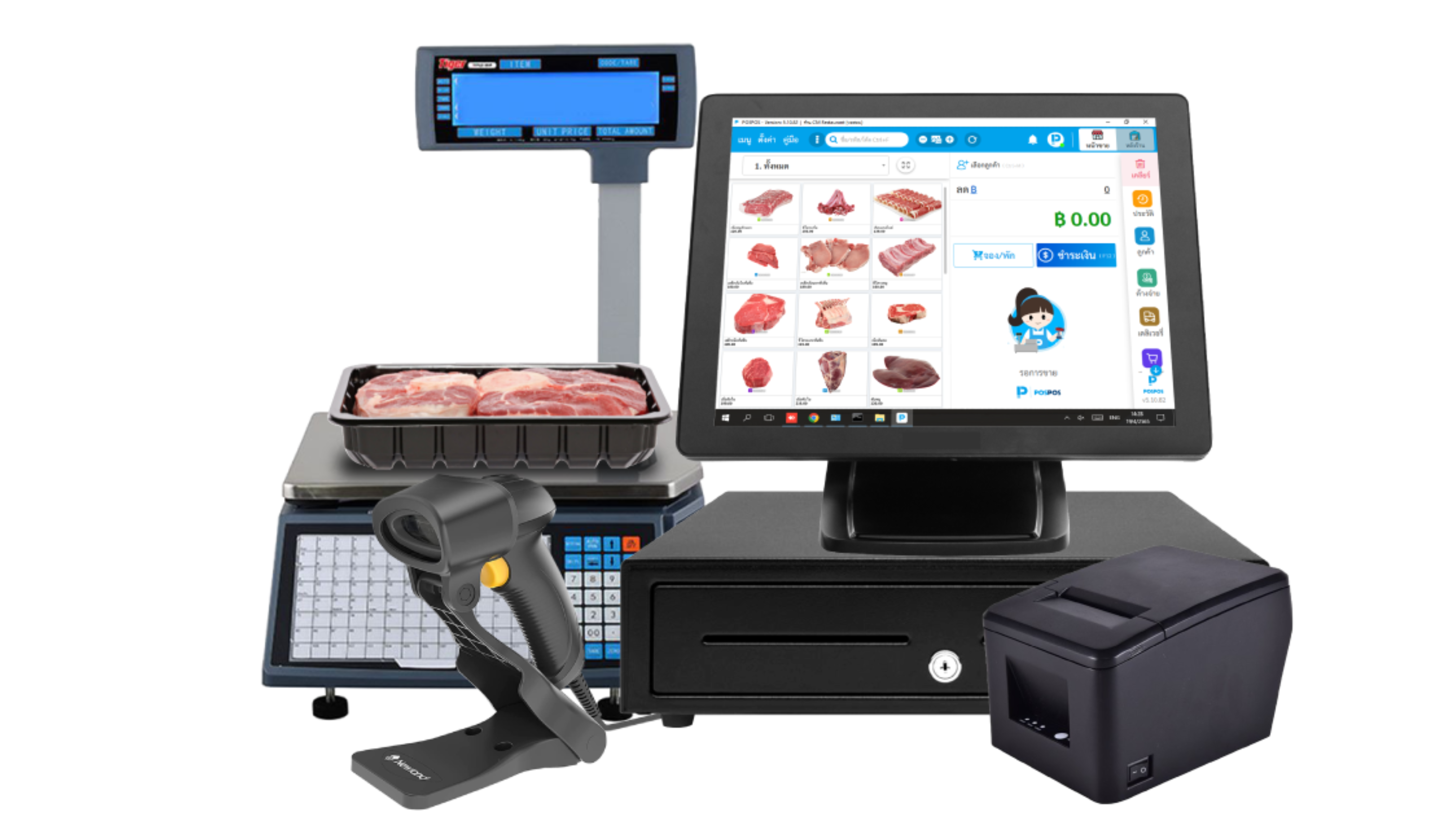 - เครื่องชั่งดิจิตอล + เครื่อง POS