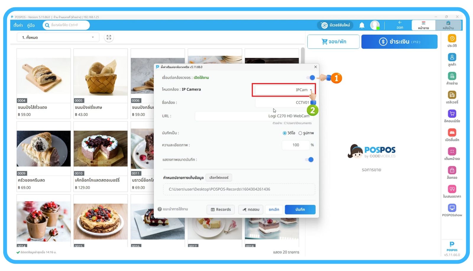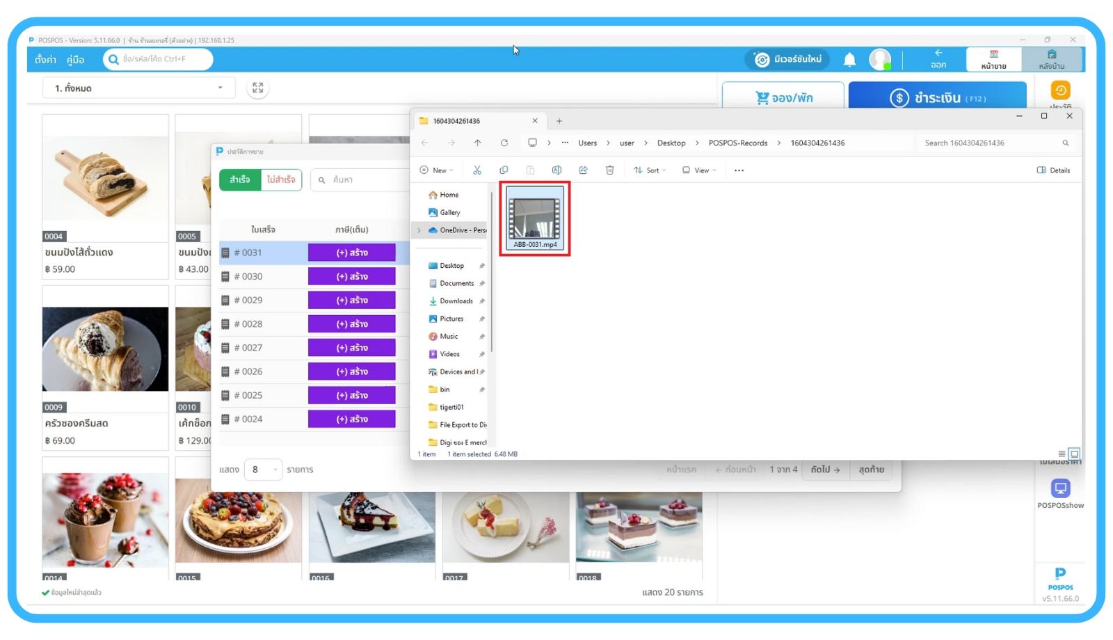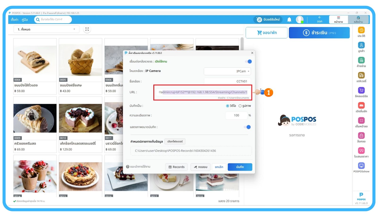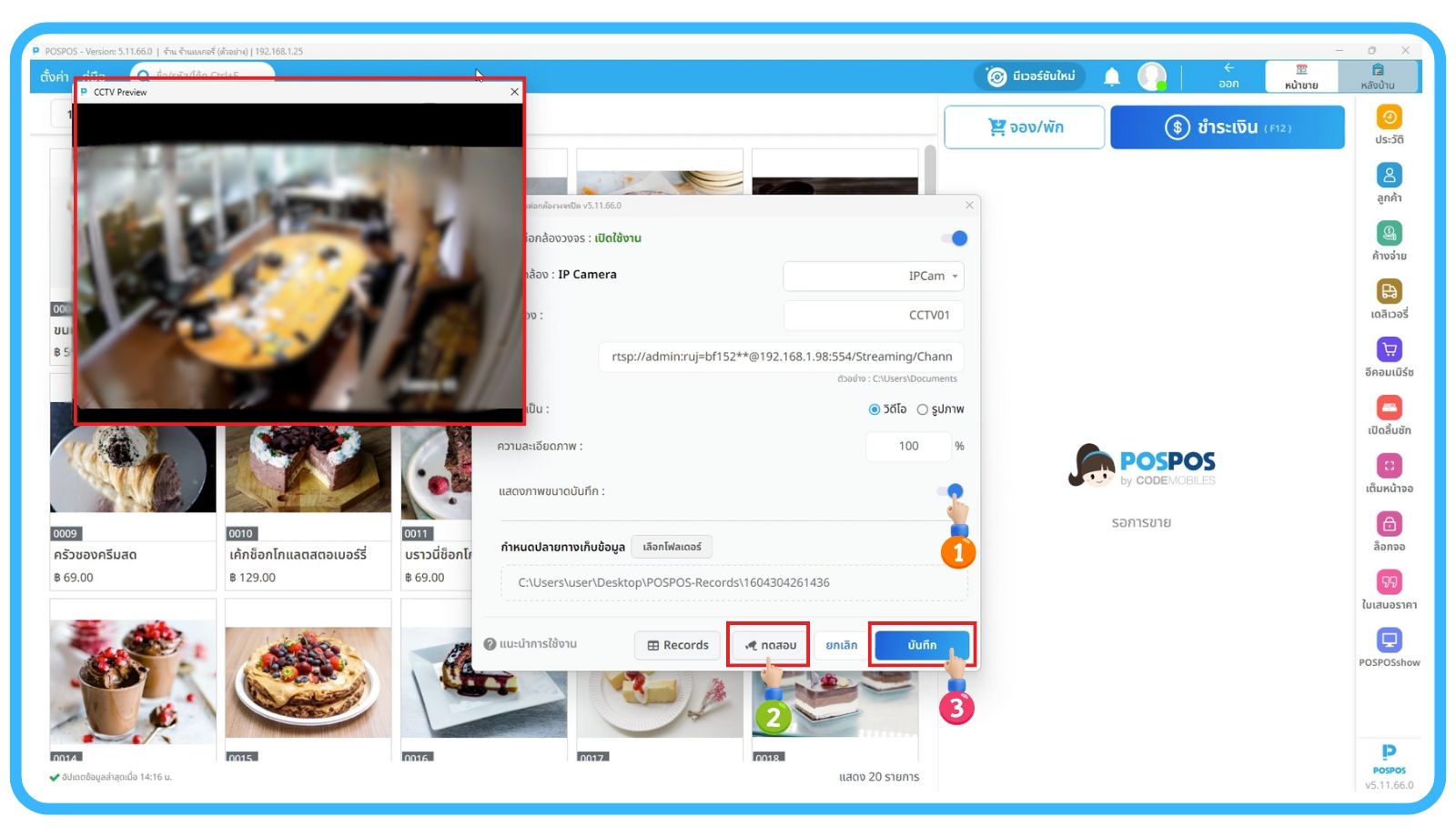 เมื่อทำการขายสินค้า จะเห็นว่าสามารถบันทึกวิดีโอจากกล้อง IP Camera (กล้องวงจรปิด) ได้อย่างเรียลไทม์
