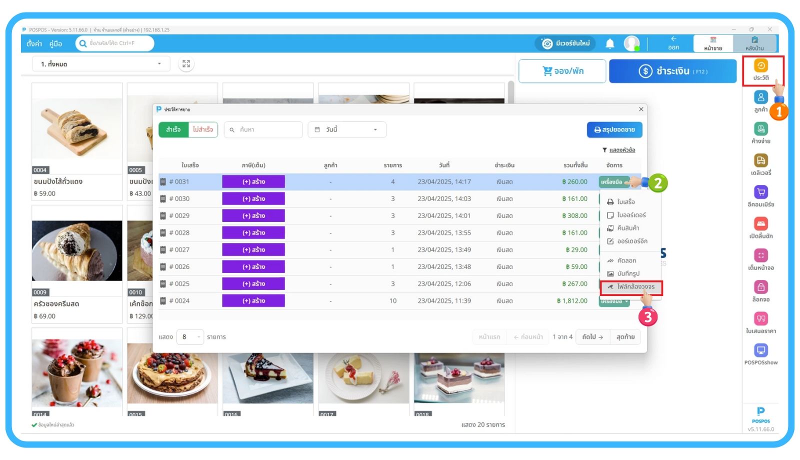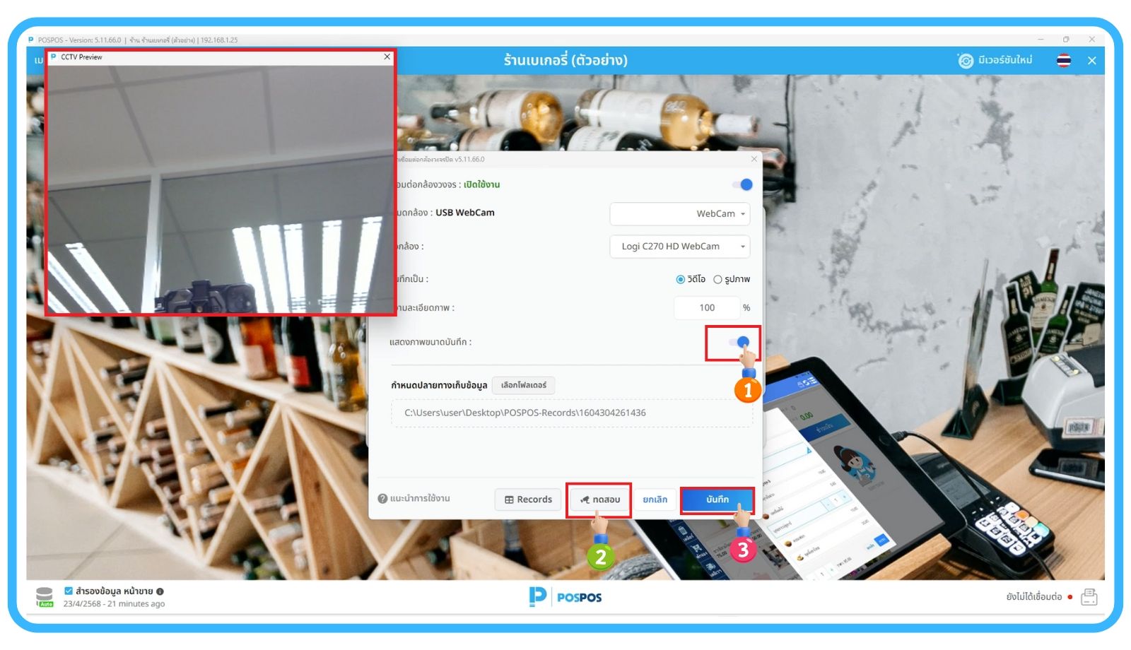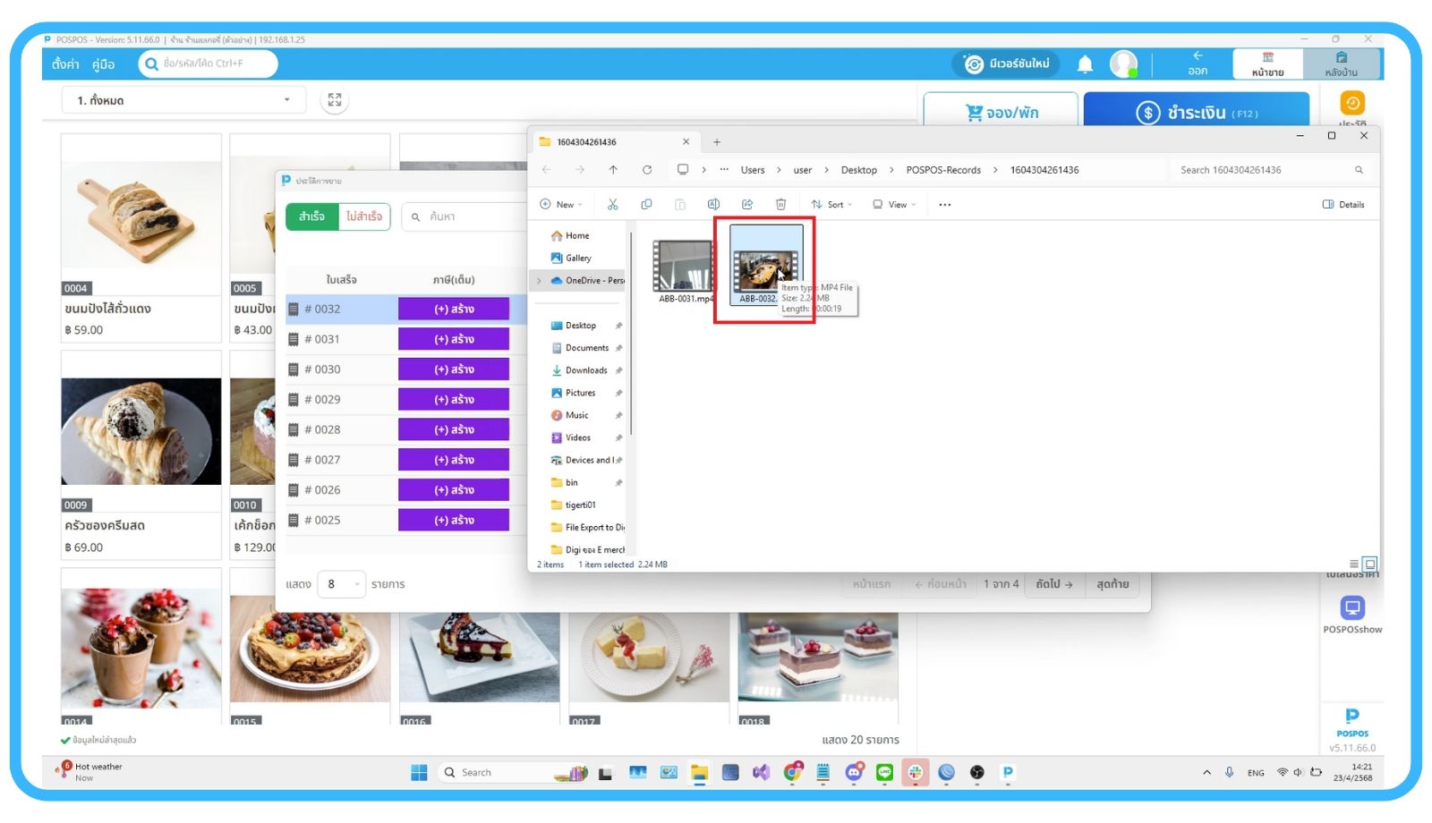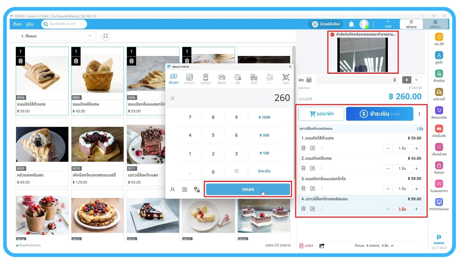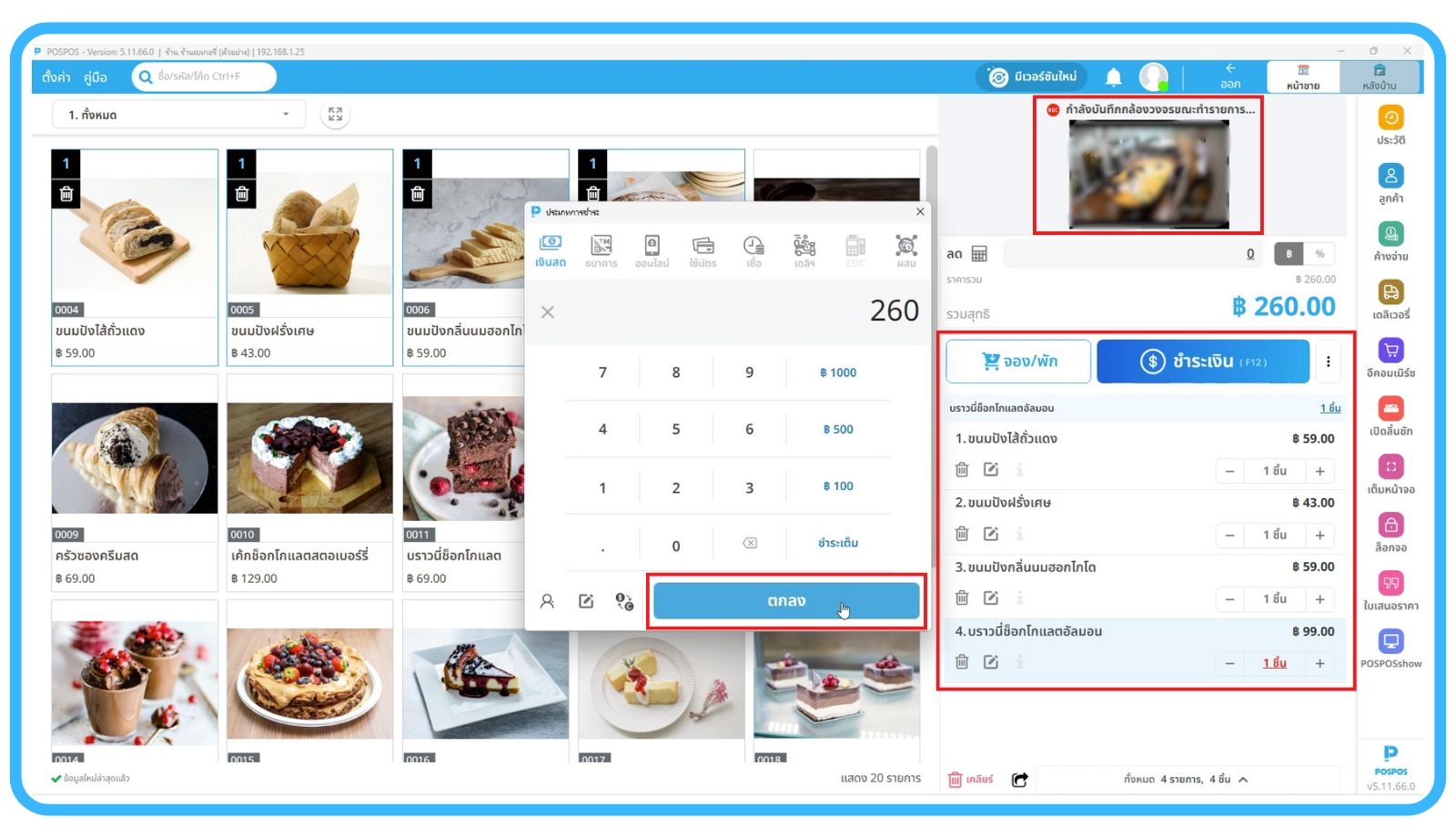 เมื่อทำการขายสินค้า จะเห็นว่าสามารถบันทึกวิดีโอจากกล้อง IP Camera (กล้องวงจรปิด) ได้อย่างเรียลไทม์